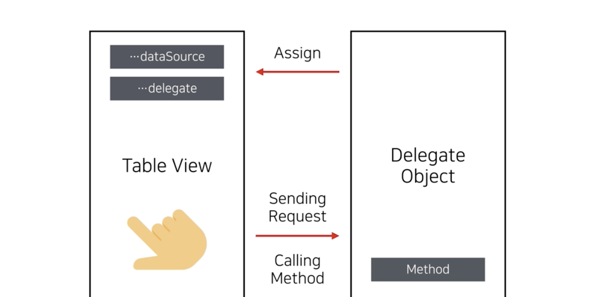 즉, 기능을 처리할 객체를 델리게이트로 설정하고, 특정 이벤트가 발생할 때 이를 델리게이트에 의해 위임된 본래의 객체로 전달해주는 역할을 한다.