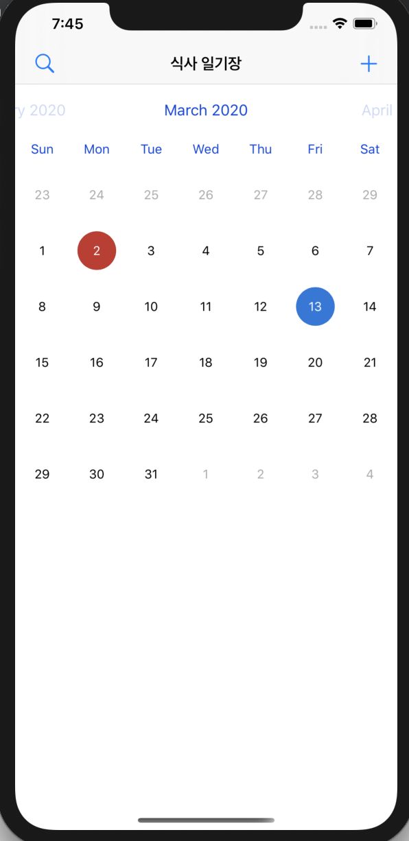 [식사 일기장] FSCalendar 적용하기 📅 본문