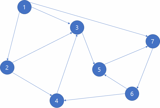 이 과정을 반복하여 그래프의 모든 정점을 방문하는 알고리즘 입니다.
